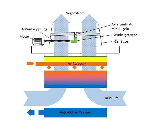 Basic structure and functioning of a cell cooling tower.